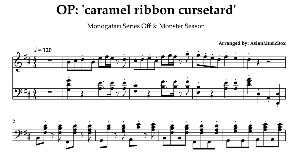 Monogatari Series Off & Monster Season OP - 'caramel ribbon cursetard' [Piano Sheet Music / MIDI / WAV]